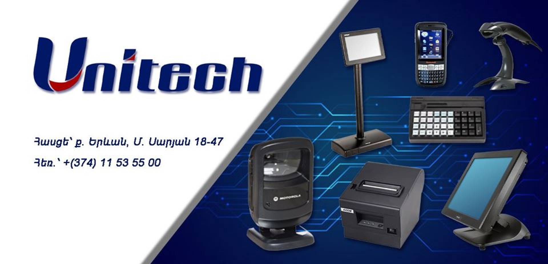UNITECH LLC·ПОНЕДЕЛЬНИК, 18 НОЯБРЯ 2019 Г.· Unitech ընկերությունը Հայաստանում հանդիսանում է առաջատար առևտրային ավտոմատացրած սարքավորումների մատակարարը՝ մանրածախ և մեծածախ առևտրի ոլորտում: Մենք առաջարկում ենք Ձեր բիզնեսի ավտոմատացման, ժամանակի օպտիմալացման և աշխատանքի արդյունավետության բարձրացման համար անհրաժեշտ նորագույն և ժամանակակից սարքավորումներ՝ 3 տարի երաշխիքով: