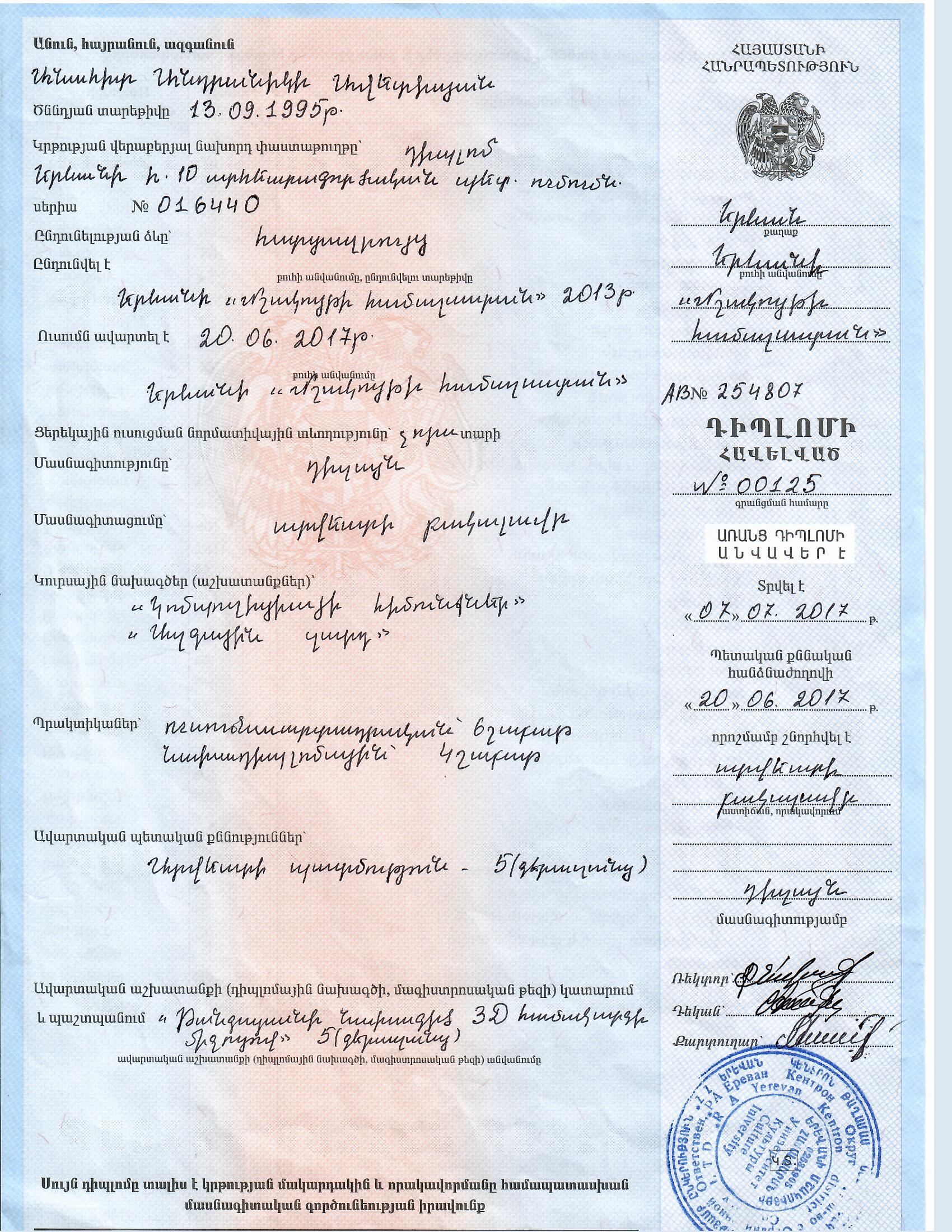 Կարող եմ աշխատելԵրևանի ցանկացած համայնքում, ինչպես նաև ոչ լրիվ շխատանքային գրաֆիկով: Պատրաստ եմ անցնել փորձաշրջան: